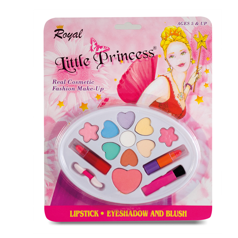 Real Cosmetic Fashion Make-Up ovalado con corazones, lápiz labial, sombra de ojos y rubor.