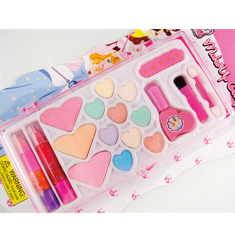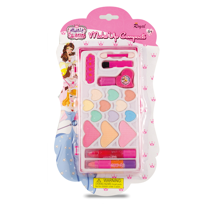 Set Make-Up Compact Rectangular con corazones, maquillaje y labios.